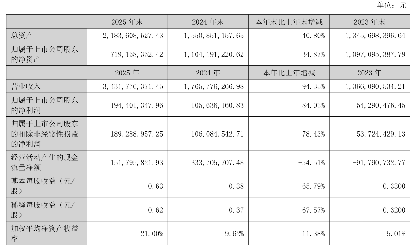 归属于上市公司股东的净利润为1.94亿元,同比增长84%;扣除非经常性损益后的净利润为1.89亿元,同比增长78.43%。