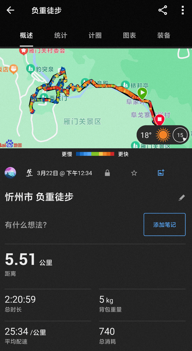 此次爬长城,我开启了负重徒步模式,可以根据自身负重来更准确的记录徒步的详细数据。
