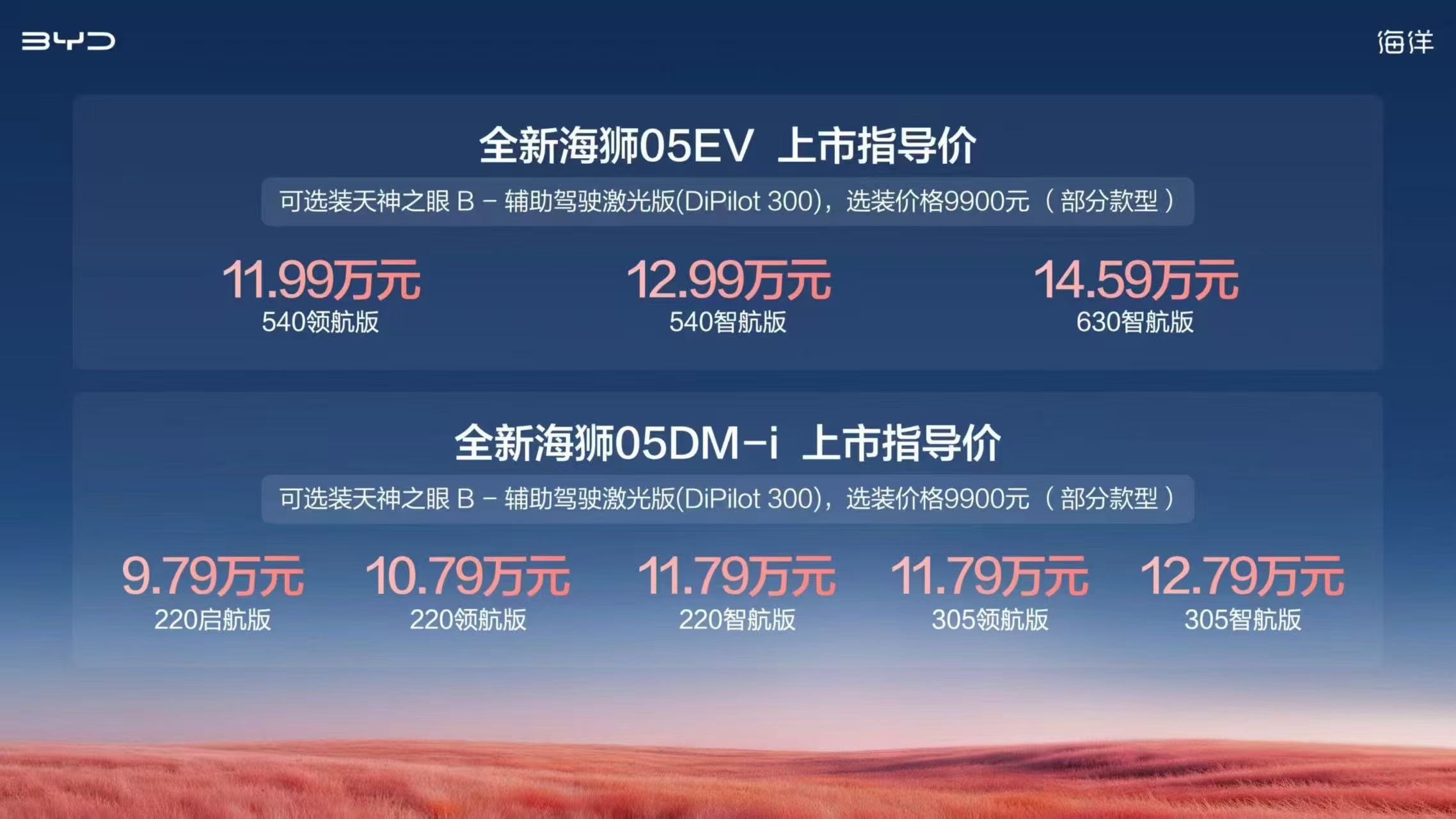 比亚迪全新海狮05“双狮”正式上市:可选激光雷达,DM-i油耗低至3.1L/100km,起售价9.79万元
