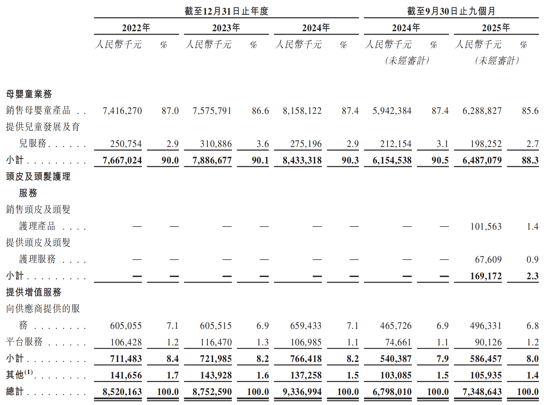 根据弗若斯特沙利文的资料,按2024年GMV计,孩子王在中国母婴童产品及服务市场上排名第一,市场份额为0.3%。尽管反映出中国母婴童市场呈现“大而散”的格局,但同时也意味着孩子王仍具备较大的发展空间。
