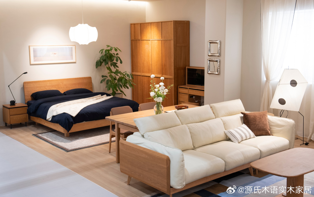 叠加持续迭代的设计语言——聚焦黑胡桃木、樱桃木等温润材质,融合北欧极简与东方榫卯美学,源氏木语成功将“实木”从高价符号转化为可感知的生活方式。