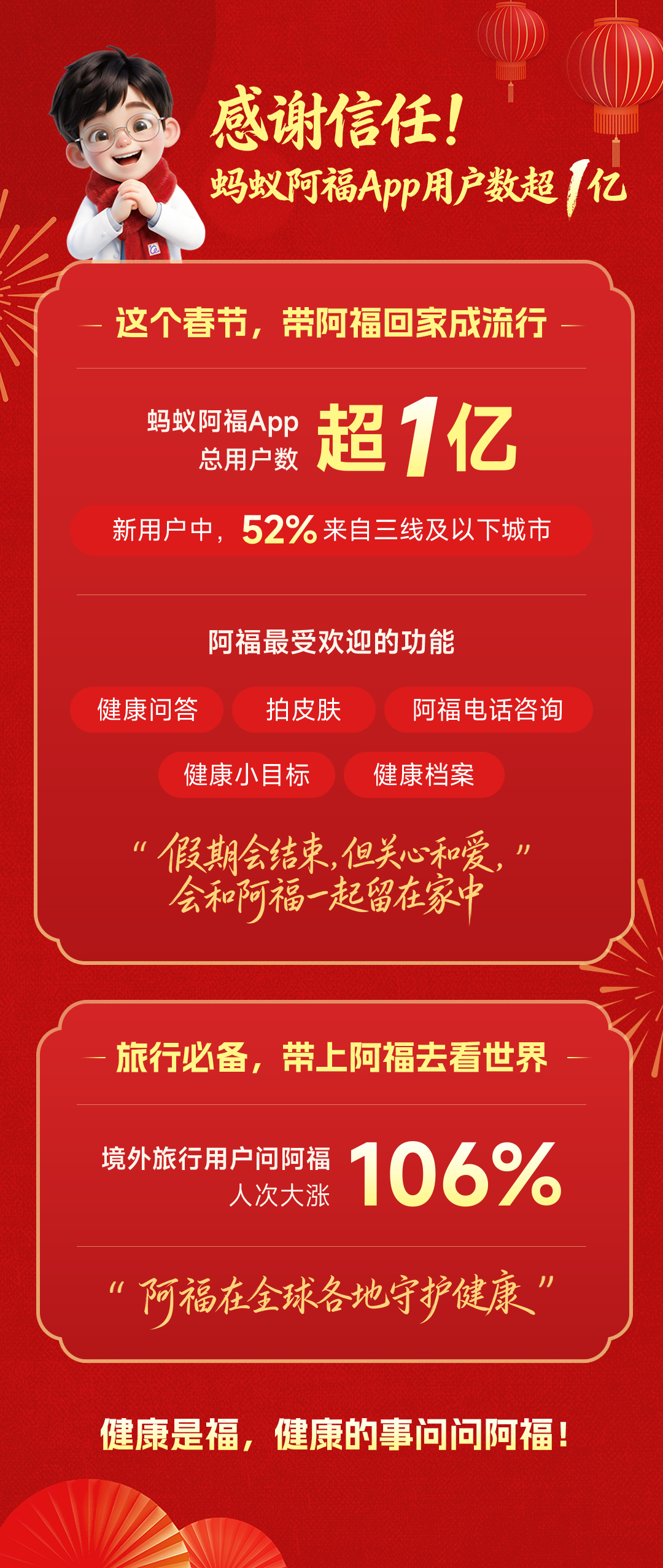 蚂蚁阿福春节用户破亿:超半数新用户来自下沉市场,境外健康咨询量翻倍