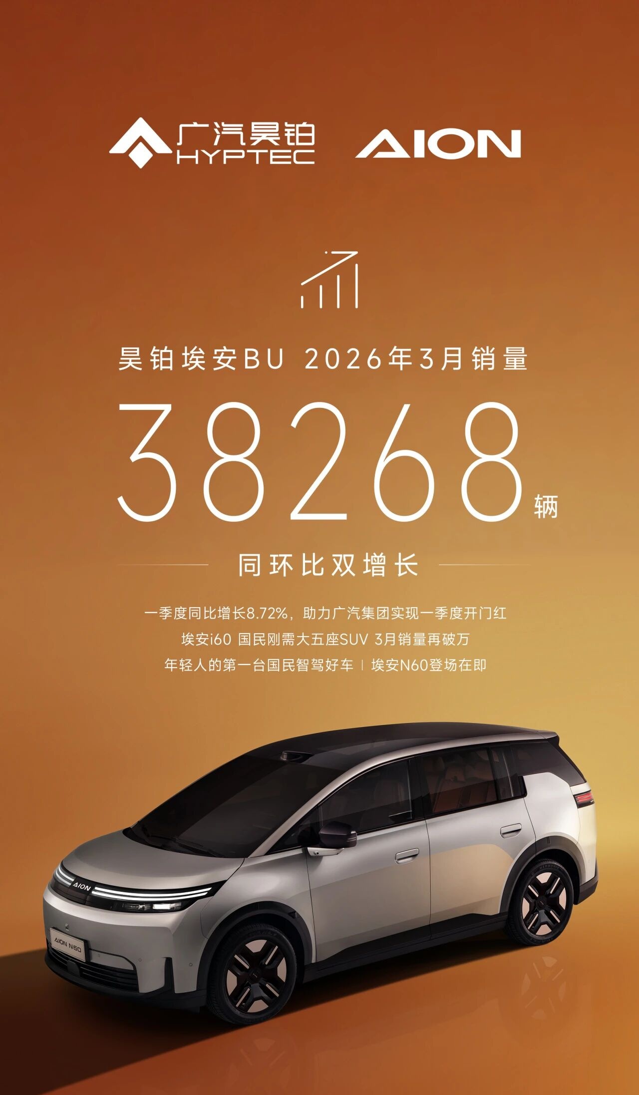 昊铂埃安BU 2026年3月销量为38,268辆。