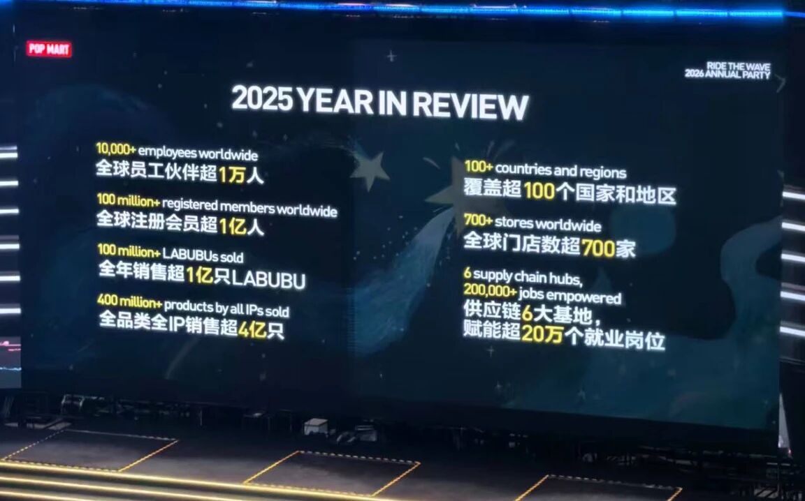 泡泡玛特2025年业绩亮眼:全球员工破万、会员破亿、LABUBU销量达1亿只