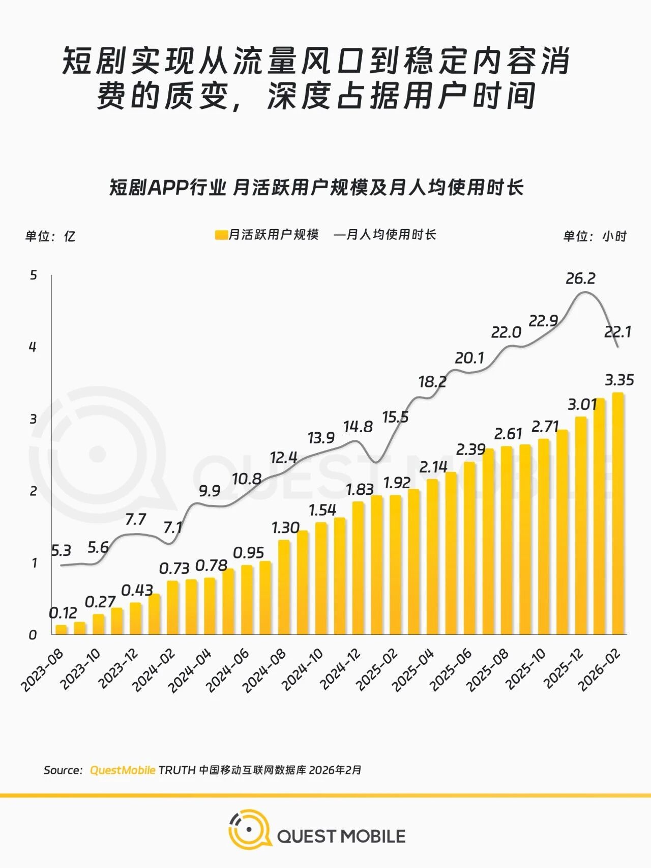 短剧行业覆盖用户规模已达7.18亿,占中国移动互联网用户总数近六成,标志着短剧已超越早期发展阶段,正式步入‘主流渗透’的成熟期。短剧类APP在用户规模与单用户日均使用时长两方面同步攀升,凸显其对用户碎片化时间的深度占据能力,构建起‘高留存、高沉浸’的可持续生态闭环。