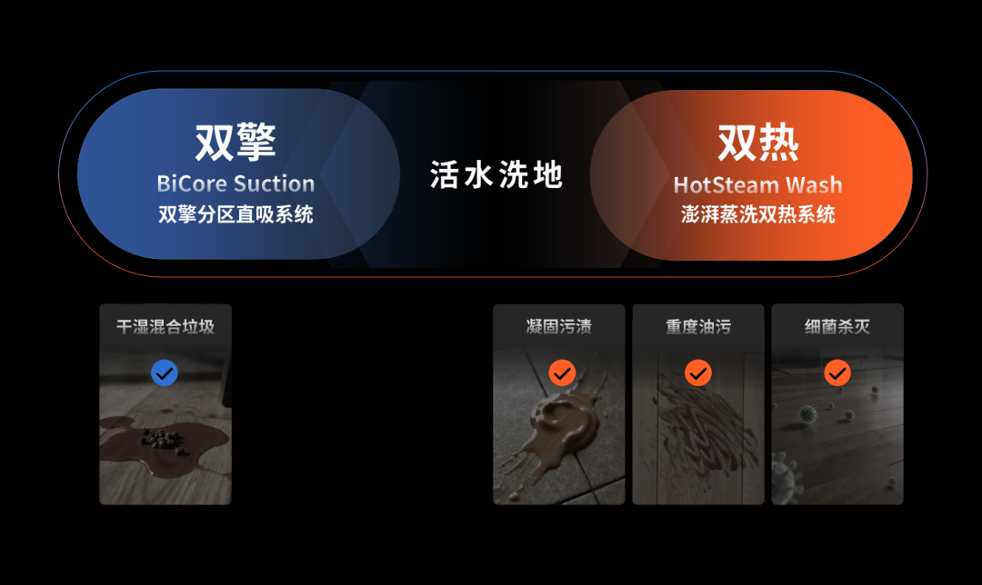 01、全球首创双擎双热活水洗地,直击四大长期顽疾