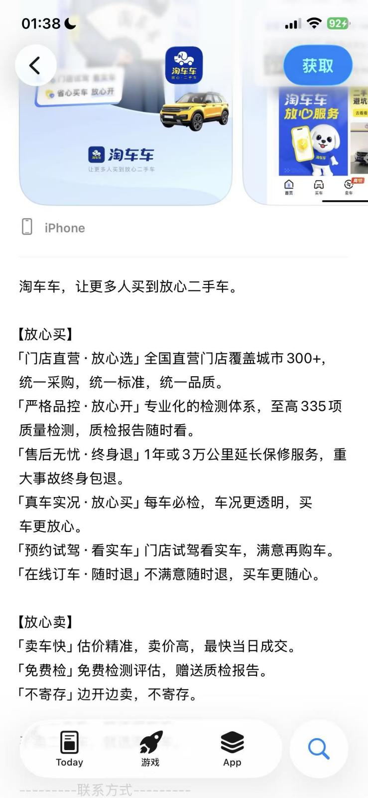 图源:苹果应用商店中国区淘车车APP下载介绍页面