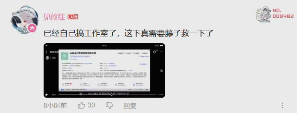 有玩家透露其已自主创业。工商信息显示,成都递归海豚科技有限公司于2026年1月注册成立,注册资本5万元,法定代表人及唯一自然人股东均为夏思源,持股比例达99%;相较之下,其在灵泽科技的持股仅为6.5187%。
