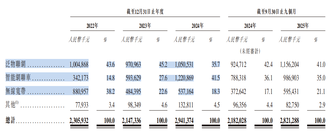 其产品已深度覆盖三大主赛道:(1)泛物联网领域,包括智慧零售(如POS终端)、智能物流(5G PDA扫码设备)、工业AIBox等;(2)智能网联汽车领域,服务于智能座舱、车载通信终端(T-Box)等关键节点;(3)无线宽带接入领域,涵盖移动Wi-Fi(Mi-Fi)、固定无线接入终端(CPE)等。同时,公司正加速布局机器人、AR/VR眼镜、边缘服务器等新兴端侧AI硬件场景。各应用领域的收入分布如下: