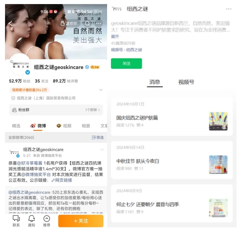 在这样的背景下,纽西之谜“存在感”发生了微妙变化。早几年,纽西之谜靠集中买量和明星合作,将品牌送进热搜、榜单和直播间。很多人即使没买过,也会记得这个带有“新西兰”气质的品牌。