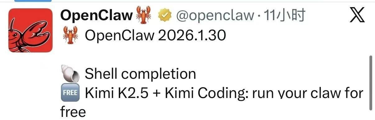 OpenClaw正式开放Kimi K2.5免费调用,加速领跑全球开源AI智能体赛道