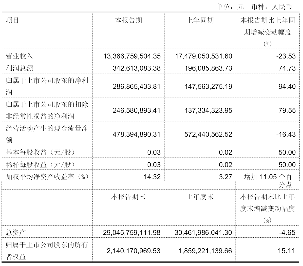 SmartHey4月16日消息,永辉超市股份有限公司(证券代码:601933 证券简称:永辉超市)今日发布2026年第一季度财报。数据显示,公司当季实现营业收入133.67亿元,较2025年同期的174.79亿元下降23.53%。